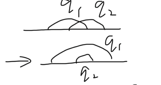 因此,可以得出结论:先排序所有左端点,右端点,val值,再如果区间之间有重叠,就如图剥洋葱即可,并记录区间长度