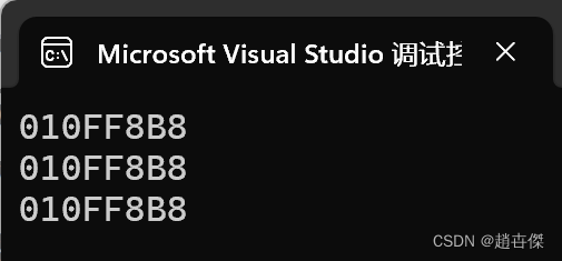 那么我们可以猜想是否是c和共用了同一块空间呢?那共用一块空间内存中存储的值是否发生了改变呢?我们再来举例说明