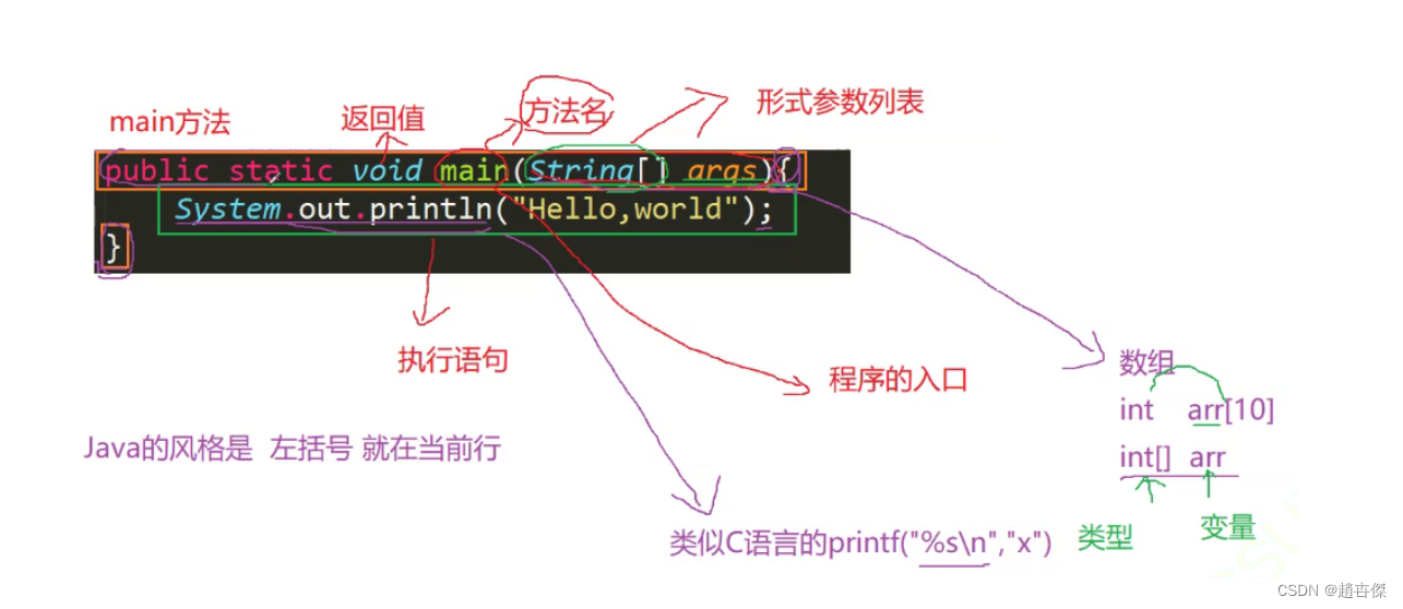 }public class HelloWorld{} 是一个类 public static void main(String[] args) {} 是一个方法 System.out.println("HelloWorld");是一个语句