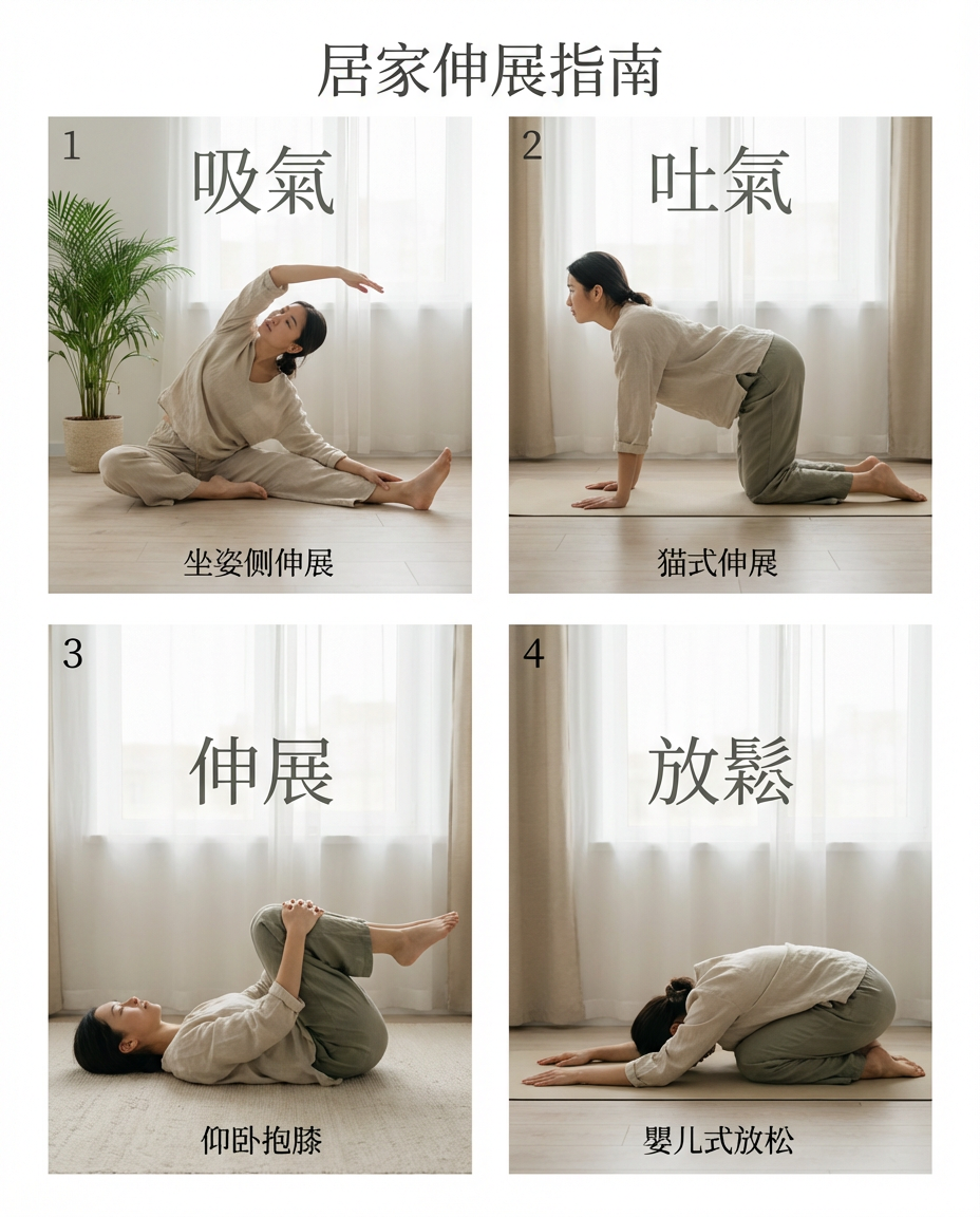 1. 居家伸展步骤图 (Instructional Design)