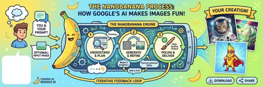 Google的策略是将大语言模型(LLM)的逻辑层与图像生成模型的像素层进行深度熔断。当你输入指令时,模型实际上经历了两个阶段: