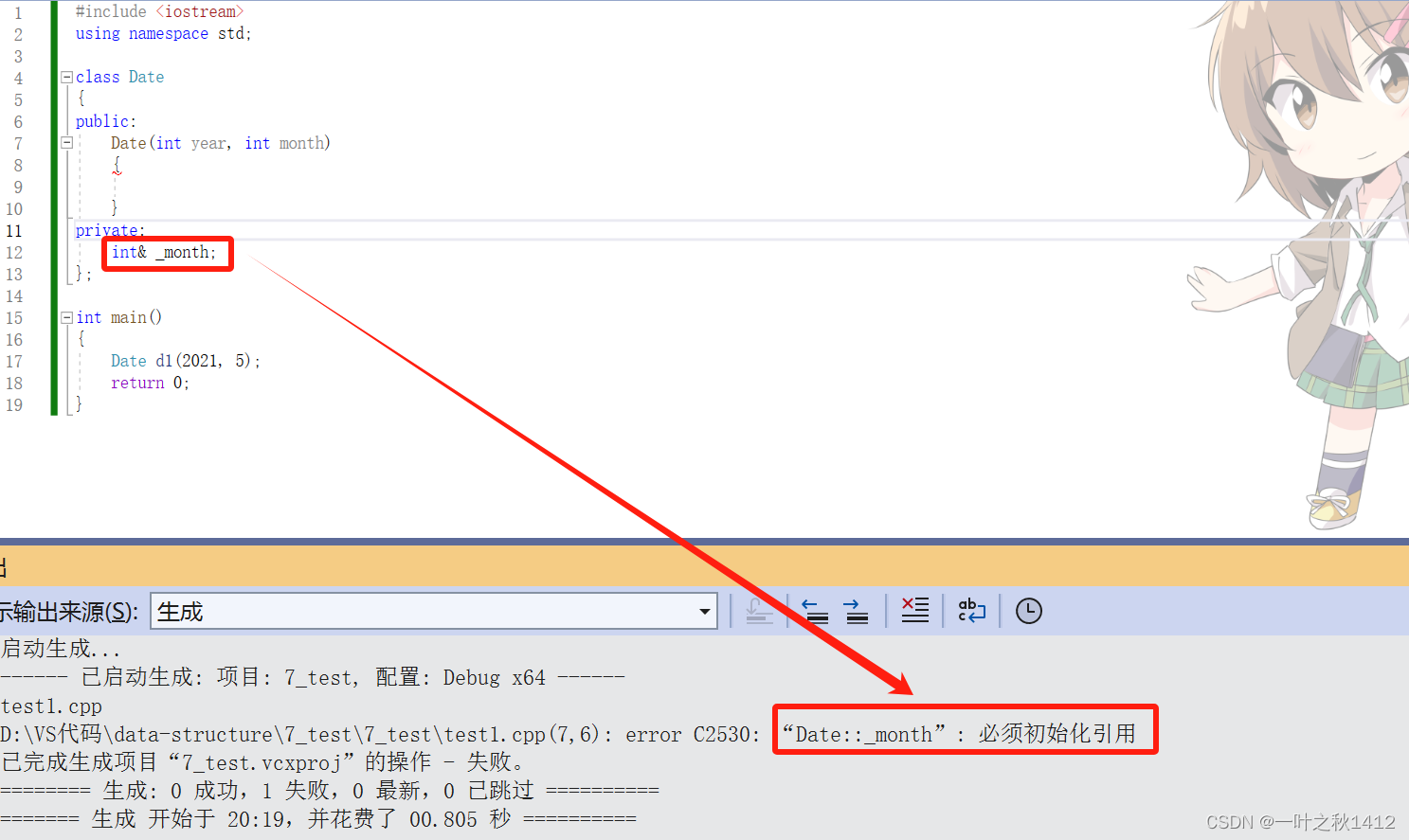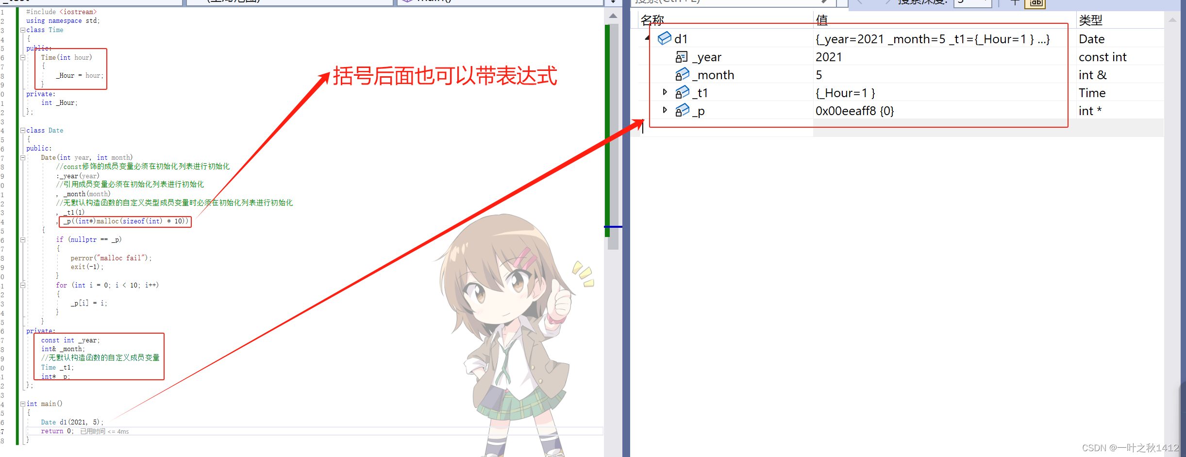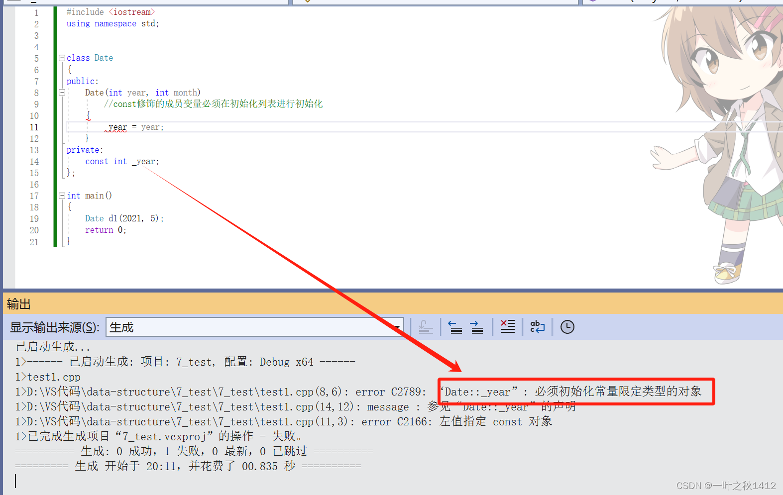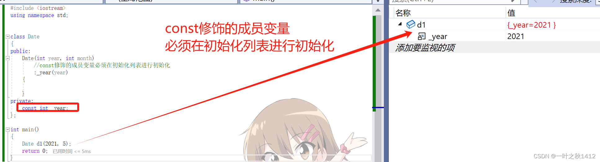 //const修饰的成员变量必须在初始化列表进行初始化