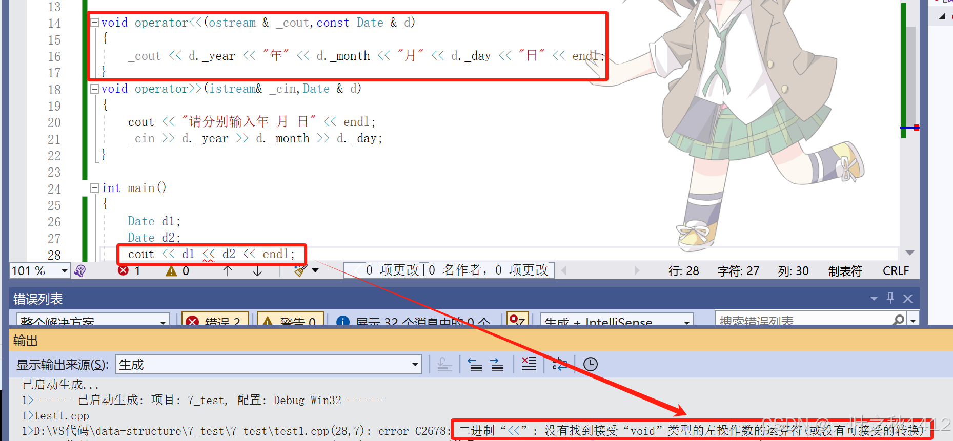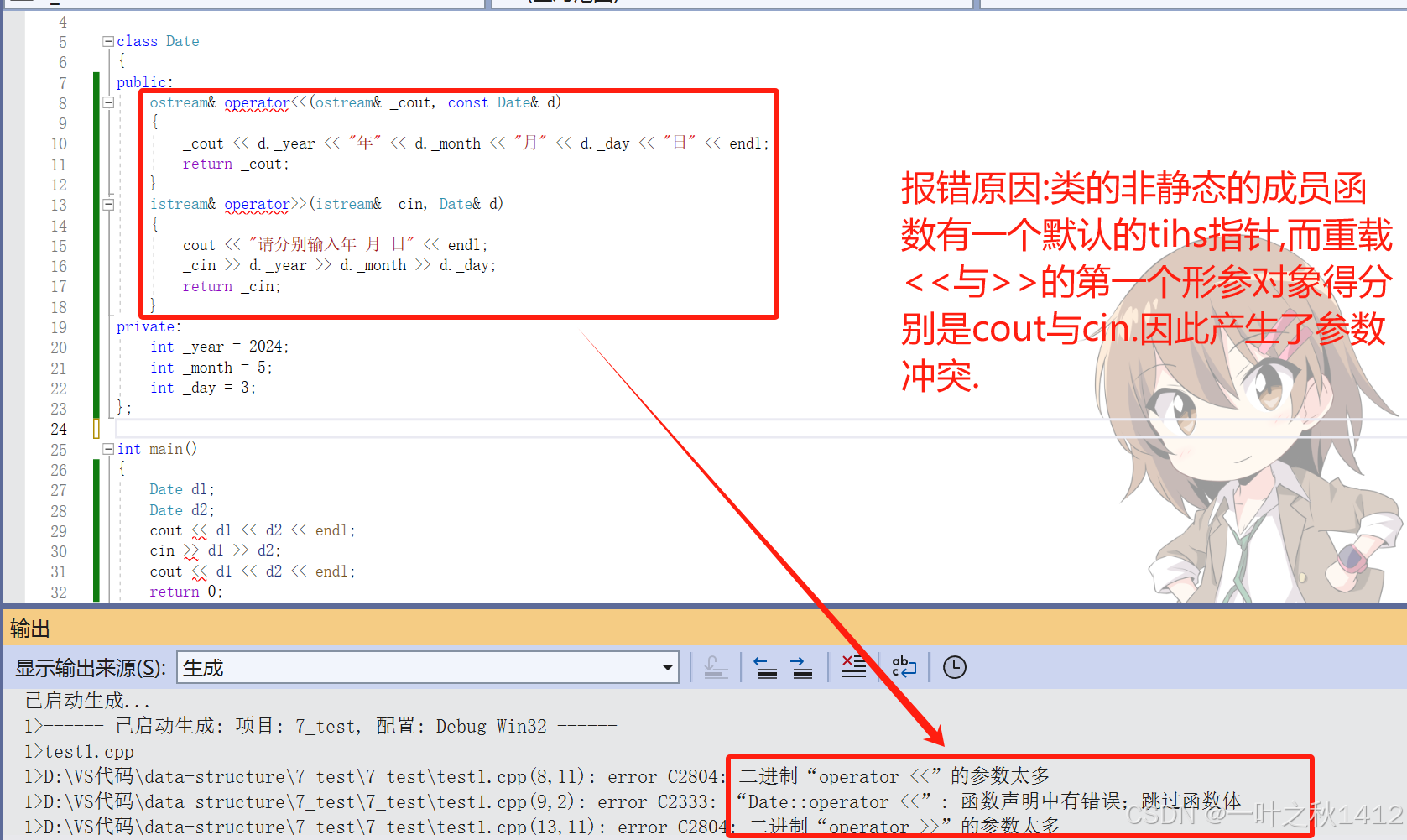 学习了<<与>>的重载方式后,那么很多uu就会有疑惑,<<与>>能不能重载成类的成员函数呢?我们来试试看.