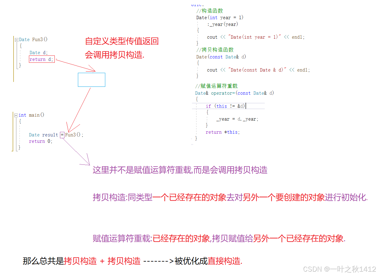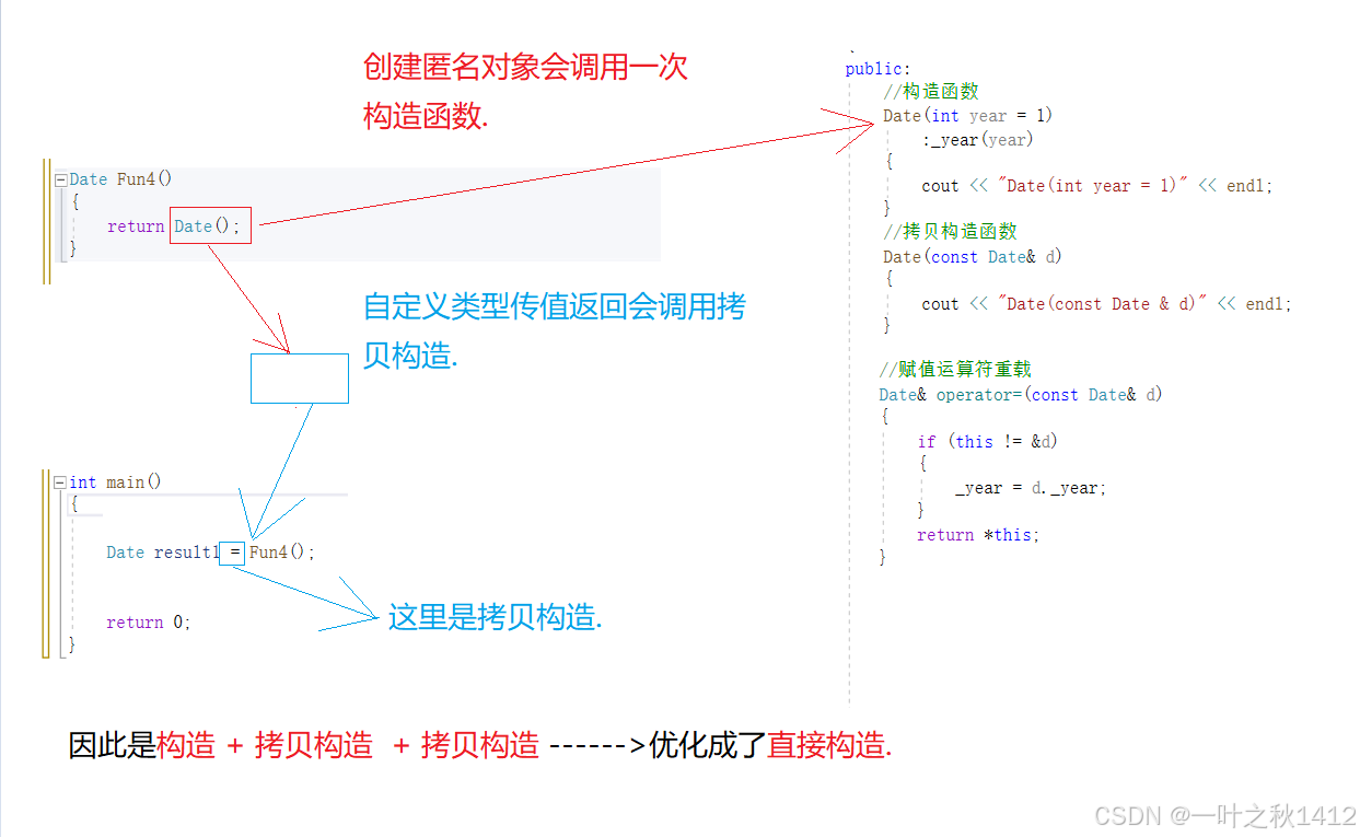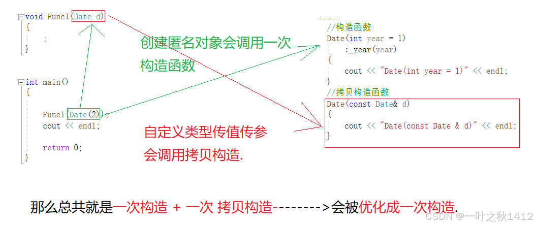 2构造一个临时对象,再进行拷贝构造----->编译器会进行优化,同一个表达式连续步骤的构造,一般会合二为一