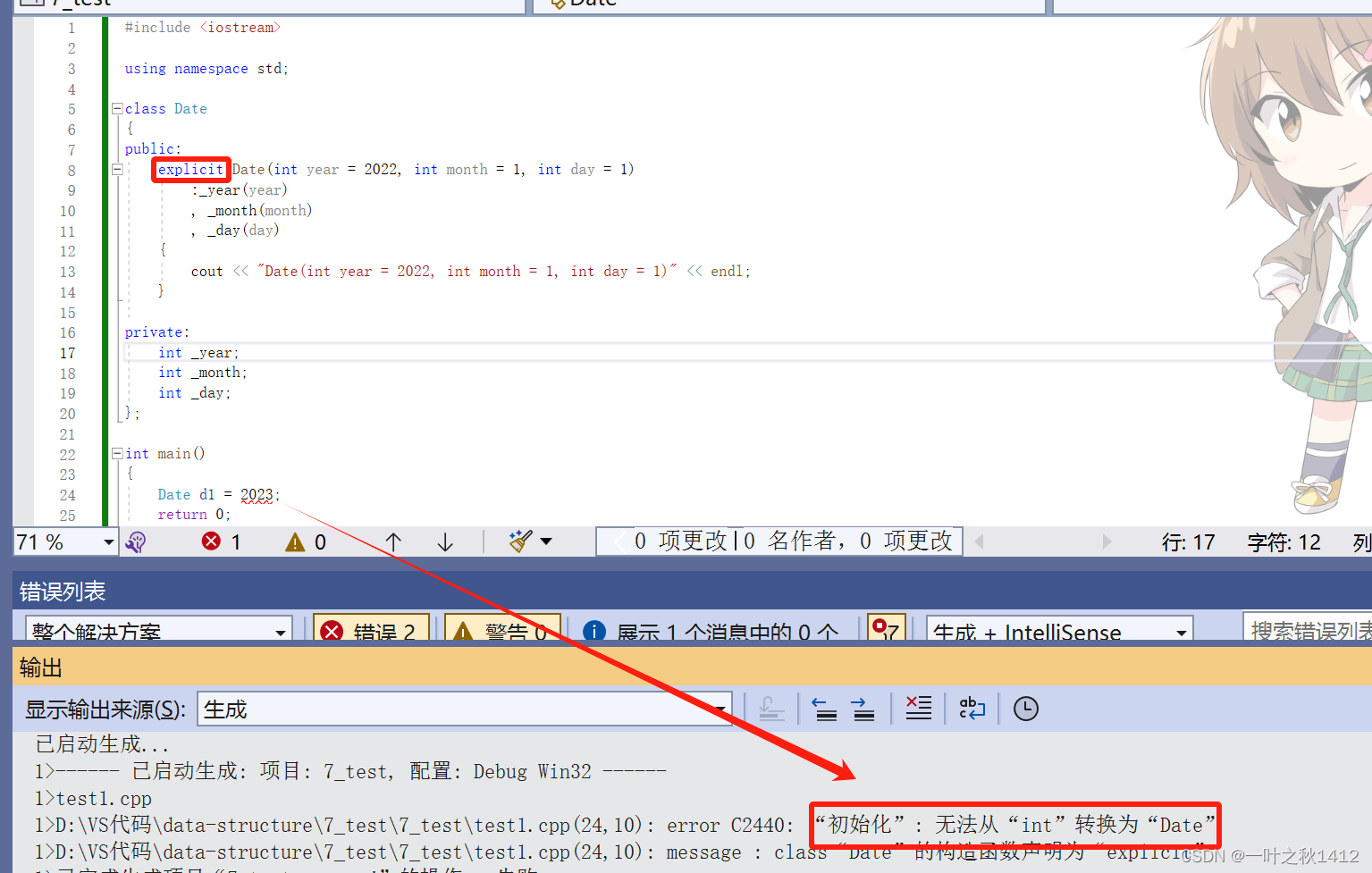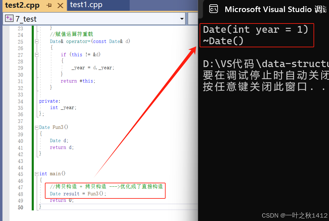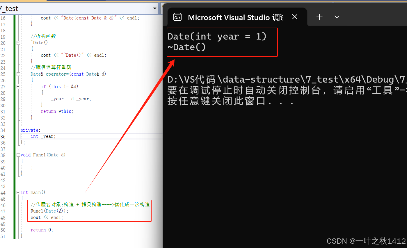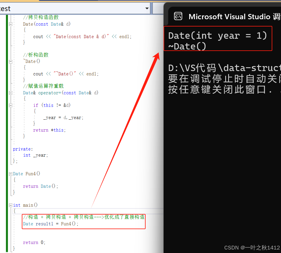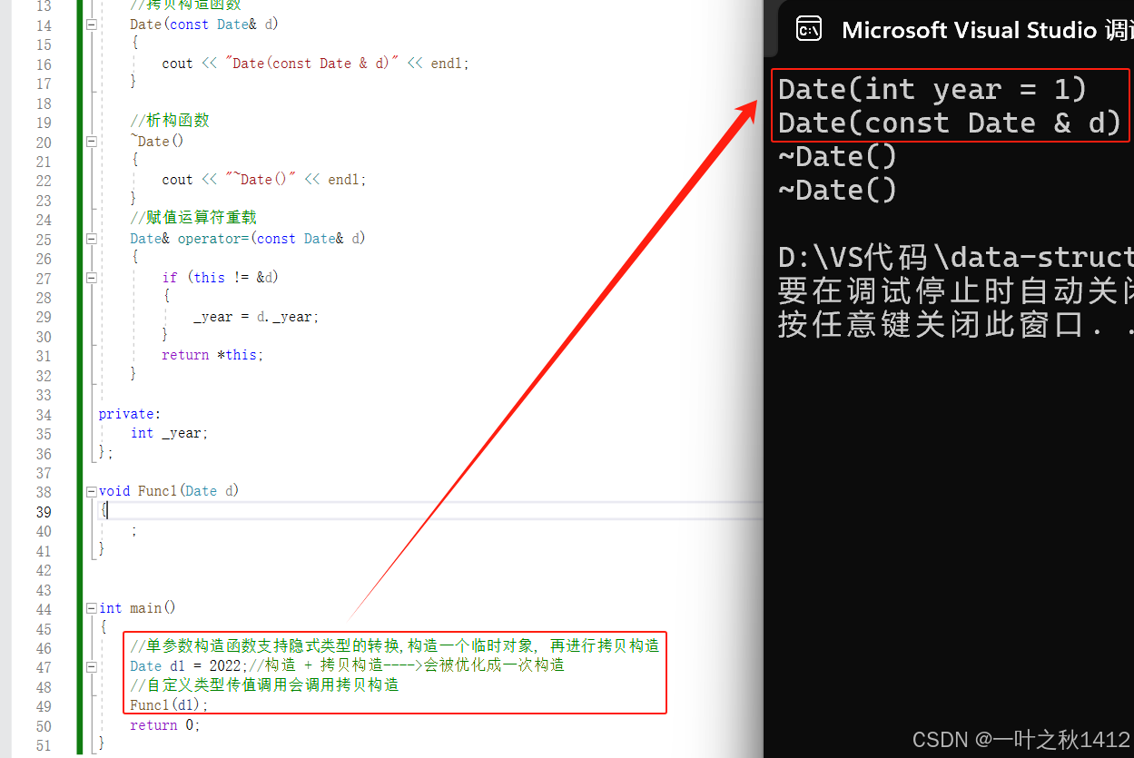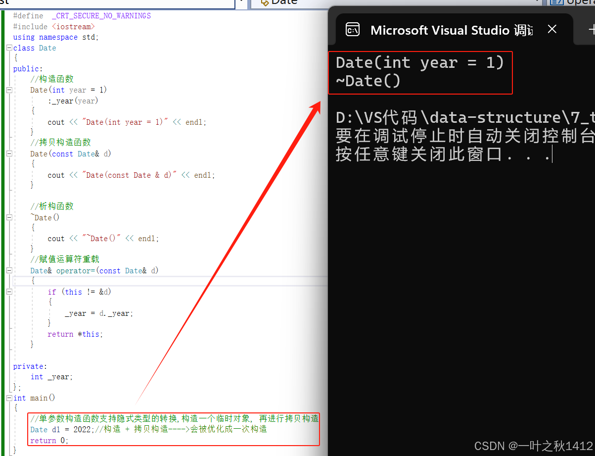 Date d1 = 2022;//构造 + 拷贝构造---->会被优化成一次构造