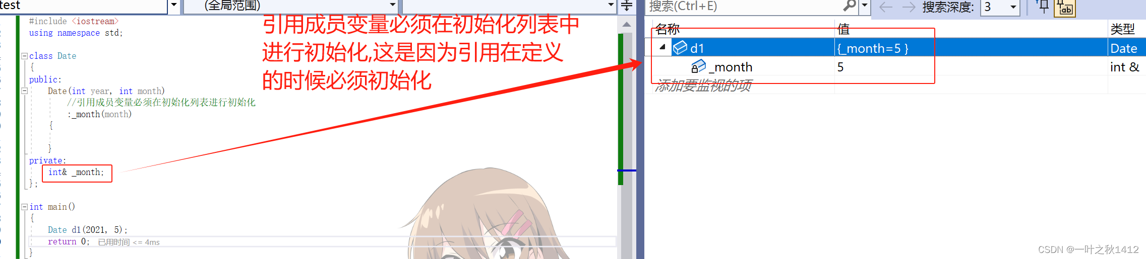 //引用成员变量必须在初始化列表进行初始化