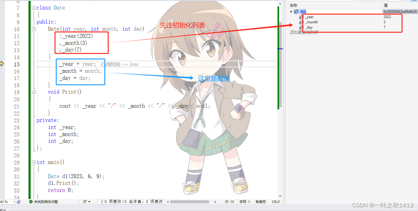 那么有的uu就在想,既然构造函数里面的函数体是进行赋值的,那么该如何对对象进行初始化呢,这里就要谈到初始化列表了