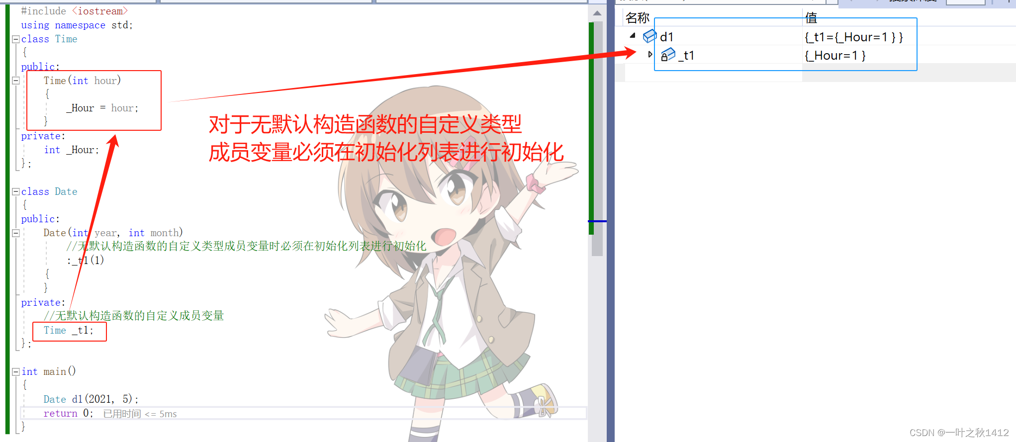 //无默认构造函数的自定义类型成员变量时必须在初始化列表进行初始化