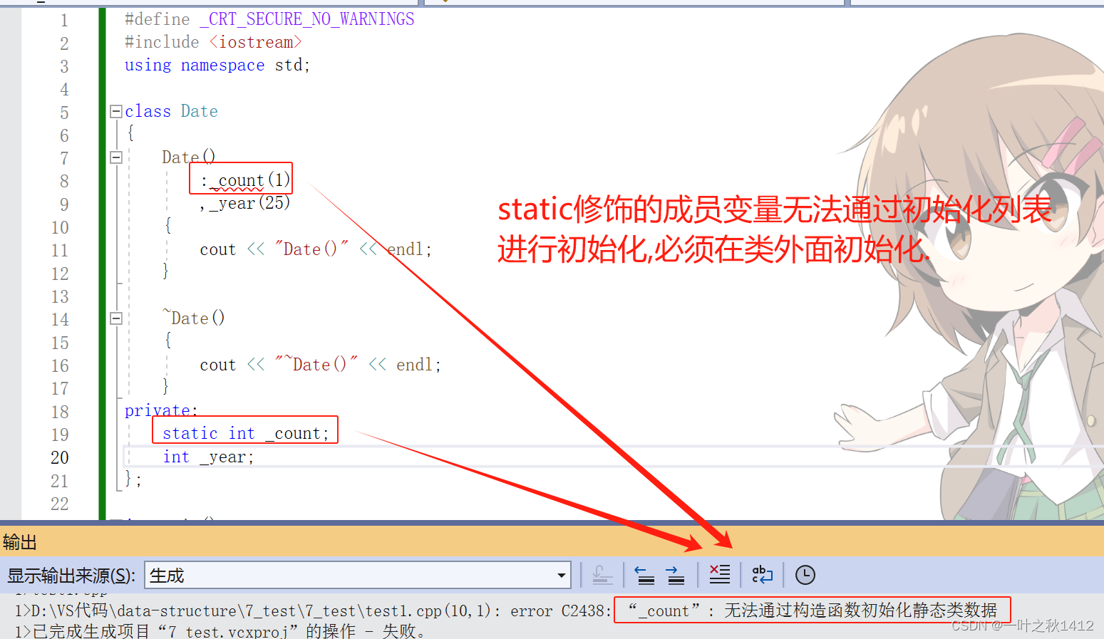 //静态成员变量必须在类外定义,定义时不添加static关键字,类中只是声明