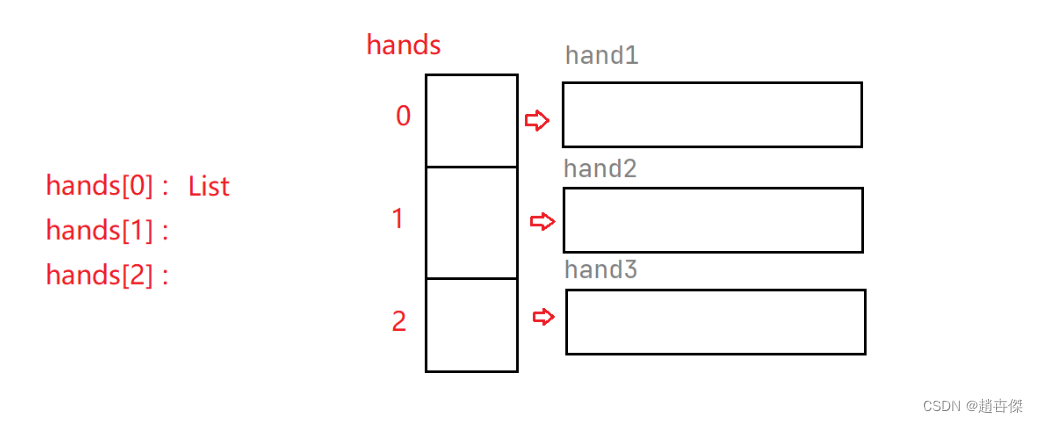 hands.get(j).add(card);//hands.get(0)=hand1,以此类推