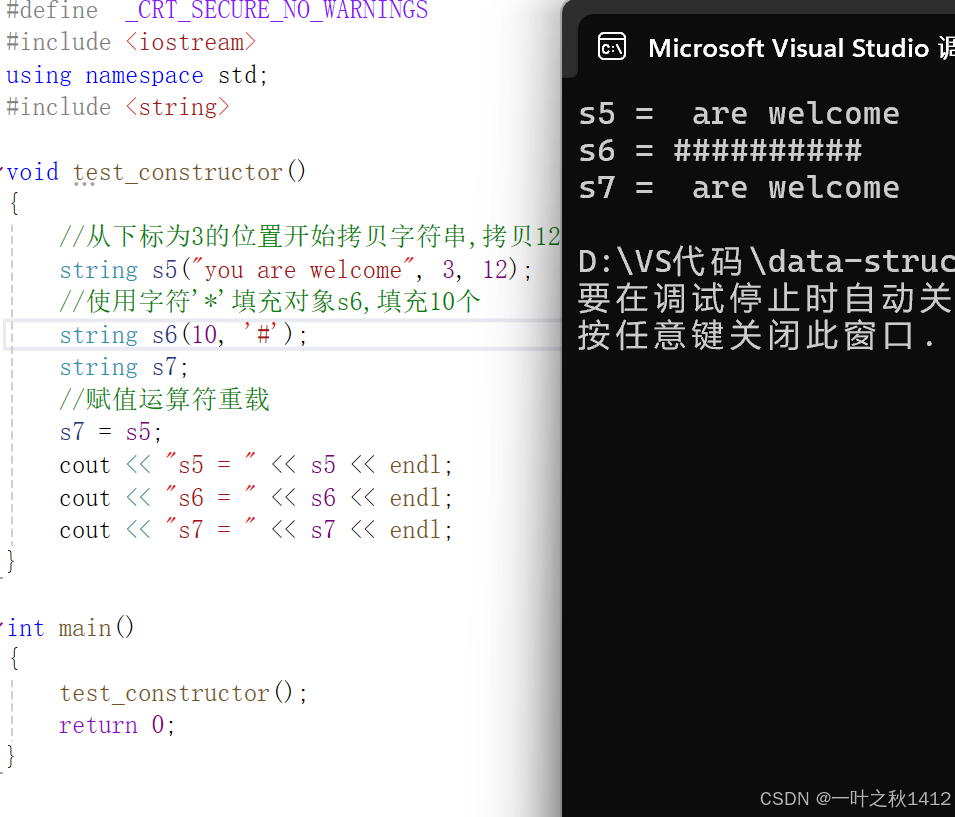 string s5("you are welcome", 3, 12);