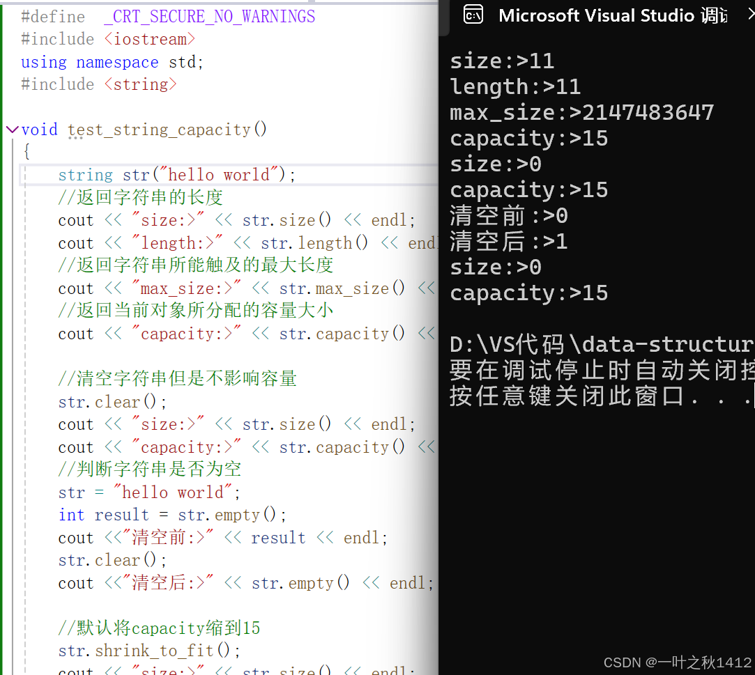 cout << "capacity:>" << str.capacity() << endl;