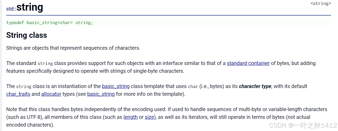 PS:注意,这个类独立于所使用的编码来处理字节:如果用来处理多字节或变长字符(如UTF-8)的序列,这个类的所有成员(如长度或大小)以及它的迭代器,将仍然按照字节(而不是实际编码的字符)来操作~