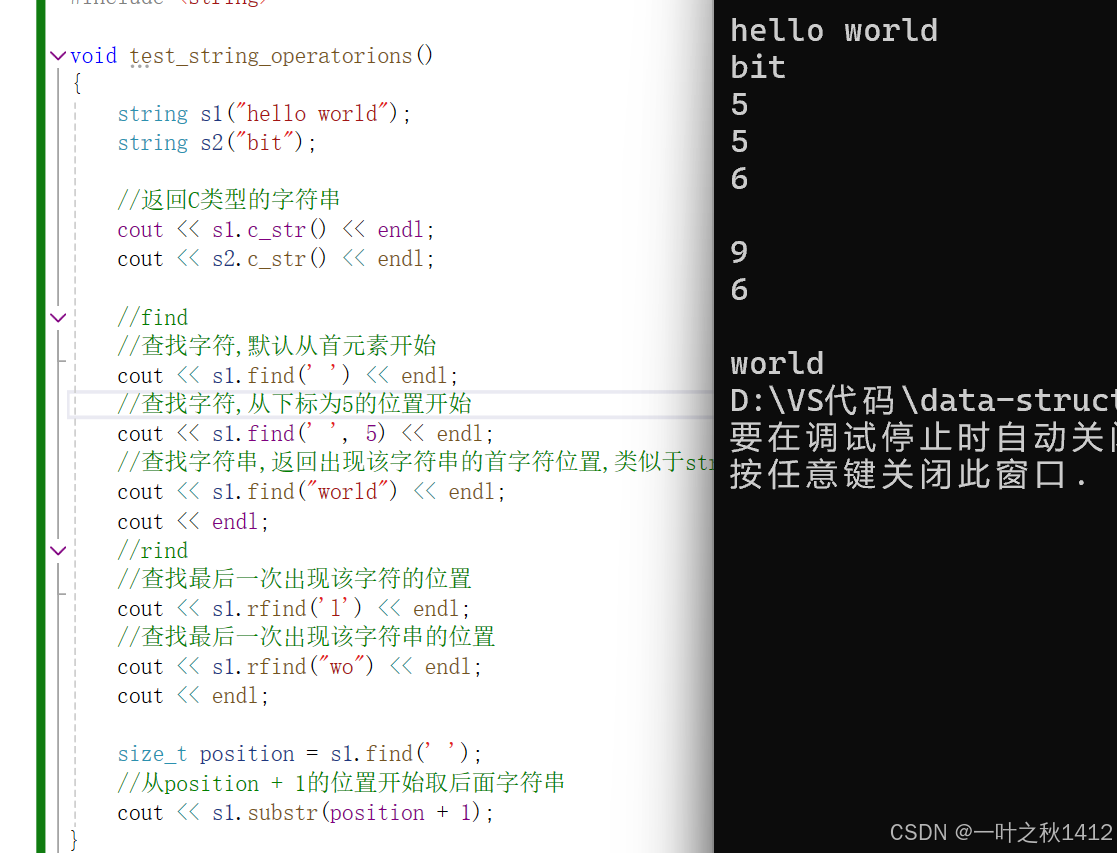 cout << s1.find("world") << endl;