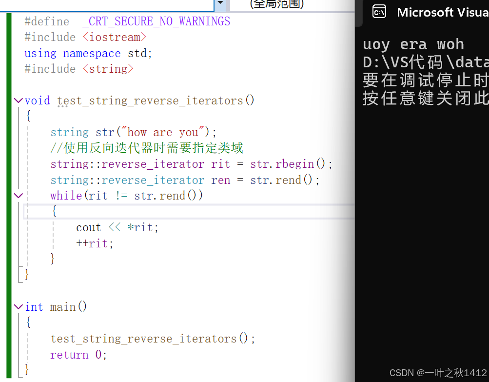 //使用反向迭代器时需要指定类域