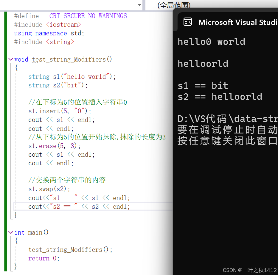 s1.erase(5, 3);