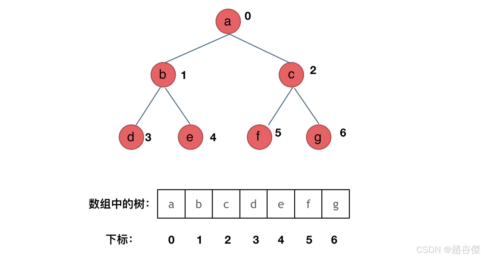用数组来存储二叉树如何遍历的呢? 如果父节点的数组下标是 i,那么它的左孩子就是 i * 2 + 1,右孩子就是 i * 2 + 2。