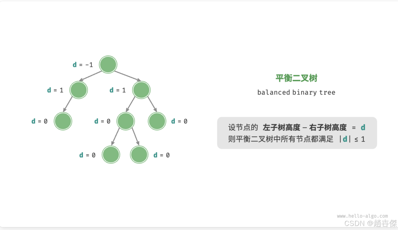 平衡二叉树:中任意节点的左子树和右子树的高度之差的绝对值不超过 1 。