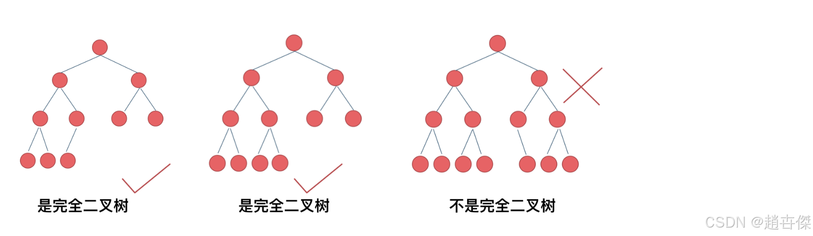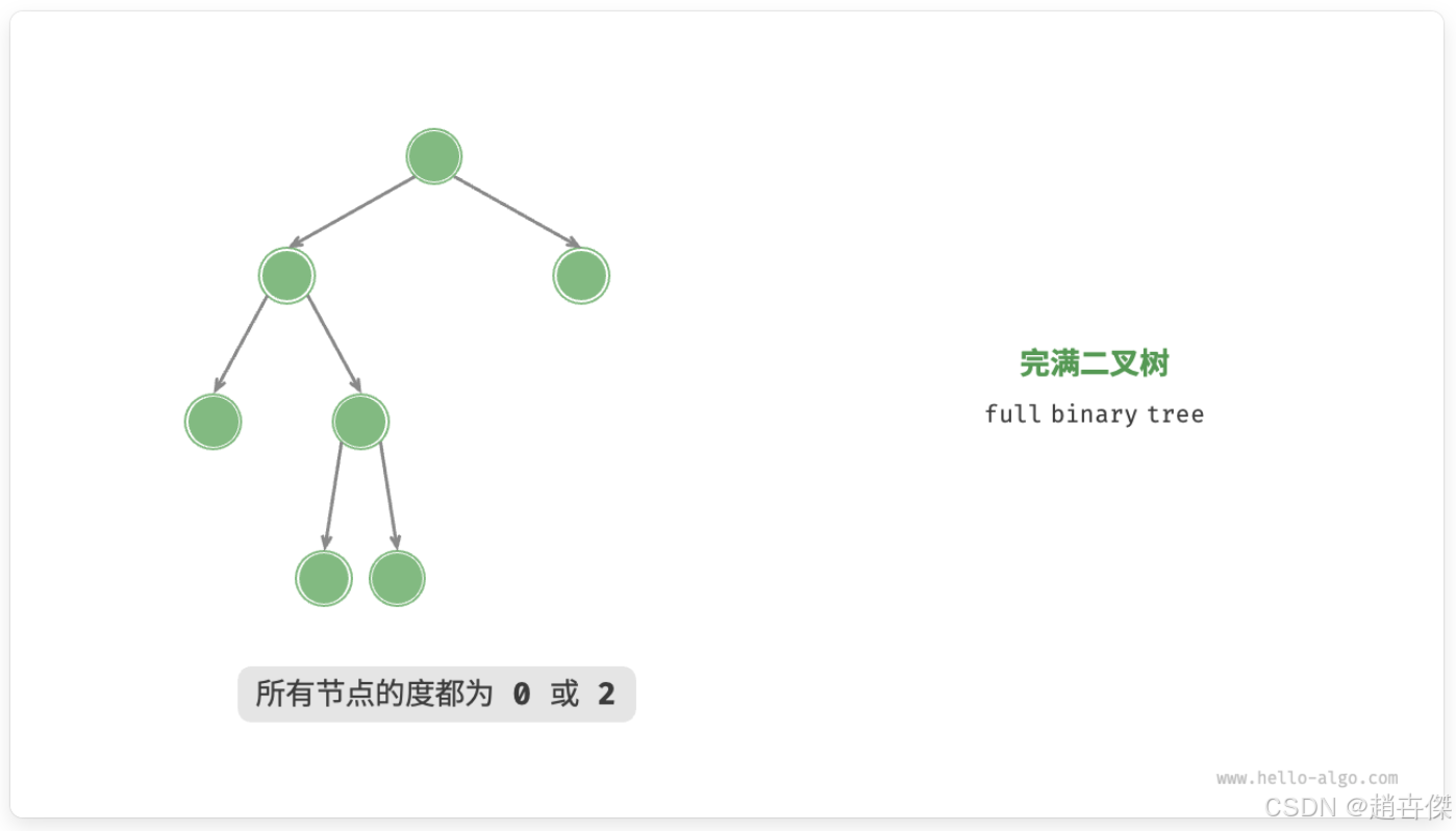 完满二叉树:除了叶节点之外,其余所有节点都有两个子节点。