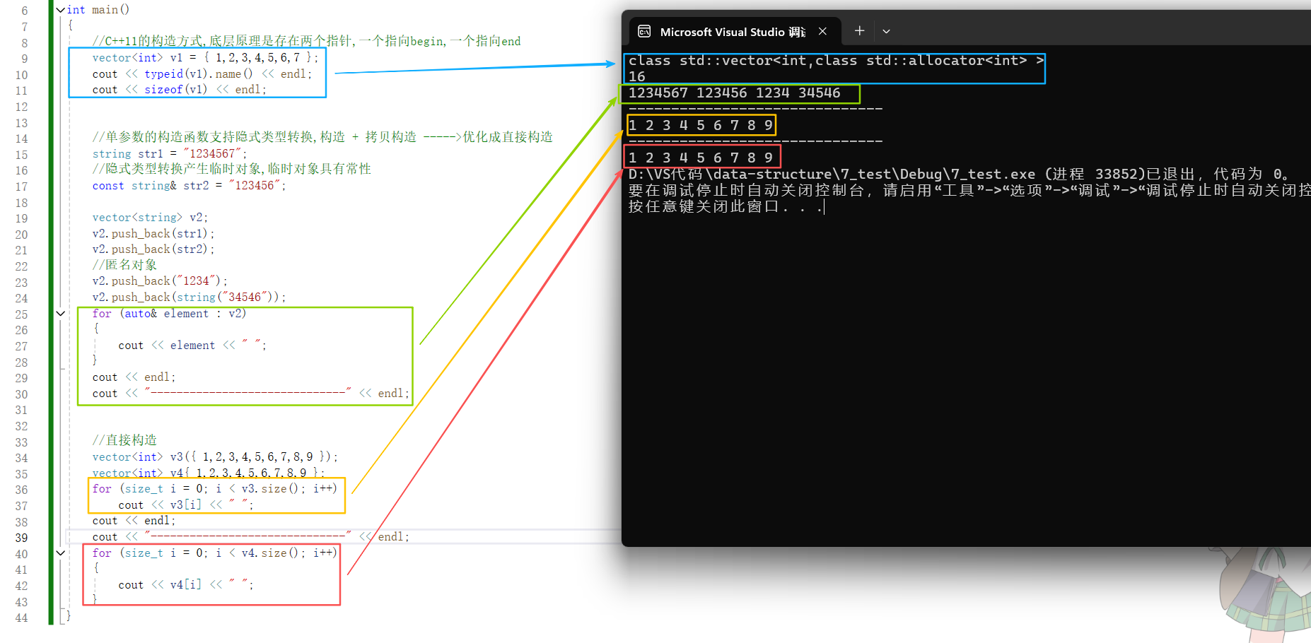 //C++11的构造方式,底层原理是存在两个指针,一个指向begin,一个指向end