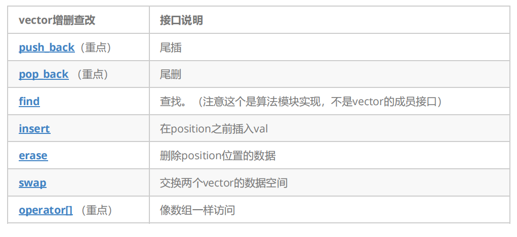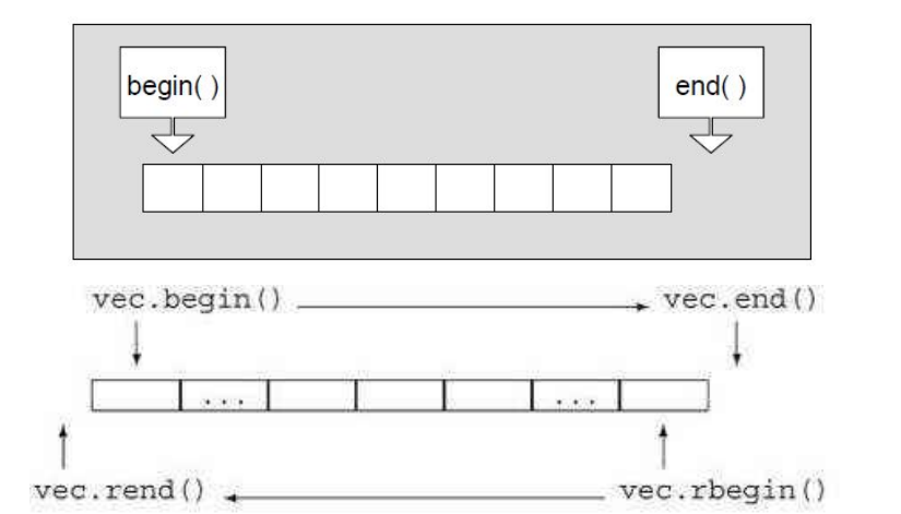 begin + end | begin用于获取第一个数据位置的iterator/const_iterator,end用于获取最后一个数据的下一个位置的iterator/const_iterator |