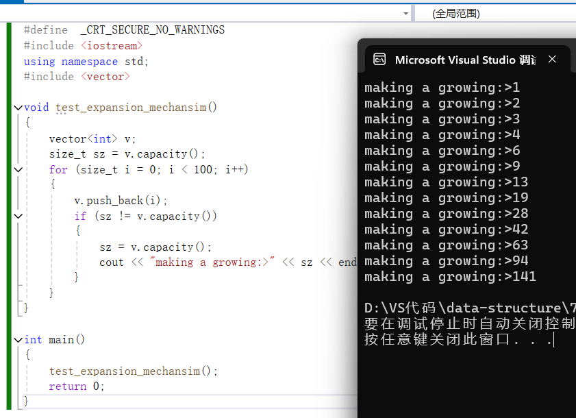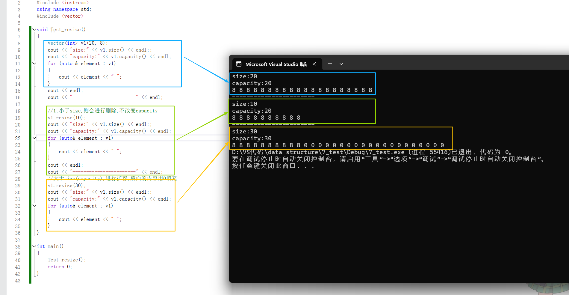 //大于size(capacity),进行扩容,后面的内容用0填充
