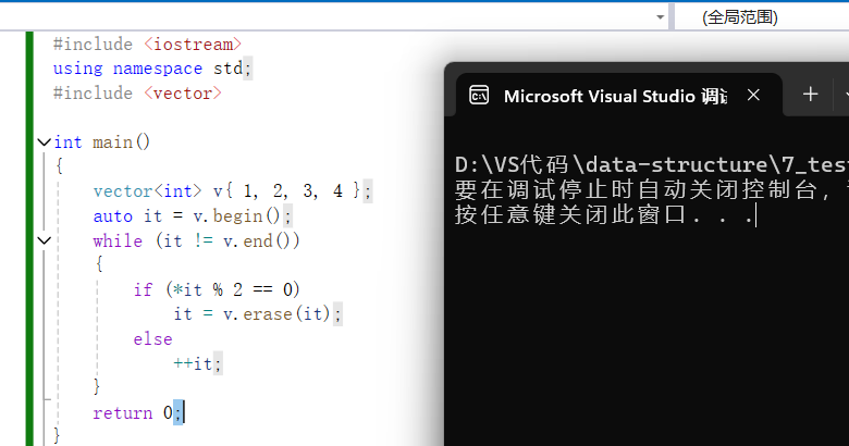 我们来看两段代码,这两段代码是删除vector中所有的偶数.