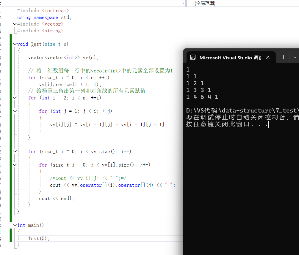 我们通过杨辉三角的代码来学习和了解动态二维数组