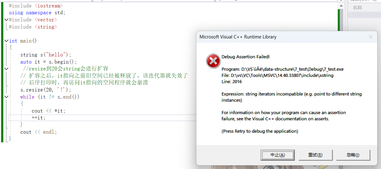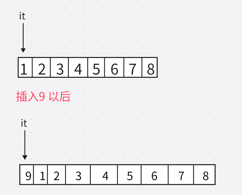 //插入元素期间,可能会引起扩容,而导致原空间被释放