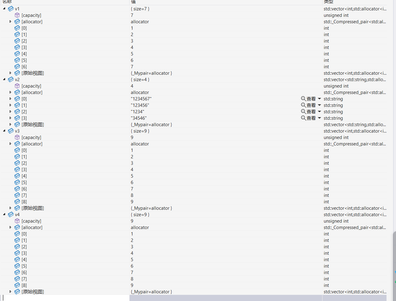 1.vector是表示可变大小数组的序列容器。 2.就像数组一样,vector也采用的连续存储空间来存储元素。也就是意味着可以采用下标对vector的元素进行访问,和数组一样高效。但是又不像数组,它的大小是可以动态改变的,而且它的大小会被容器自动处理。 3. 本质讲,vector使用动态分配数组来存储它的元素。当新元素插入时候,这个数组需要被重新分配大小为了增加存储空间。其做法是,分配一个新的数组,然后将全部元素移到这个数组。就时间而言,这是一个相对代价高的任务,因为每当一个新的元素加入到容器的时候,vector并不会每次都重新分配大小。 4. vector分配空间策略:vector会分配一些额外的空间以适应可能的增长,因为存储空间比实际需要的存储空间更大。不同的库采用不同的策略权衡空间的使用和重新分配。但是无论如何,重新分配都应该是对数增长的间隔大小,以至于在末尾插入一个元素的时候是在常数时间的复杂度完成的。 5. 因此,vector占用了更多的存储空间,为了获得管理存储空间的能力,并且以一种有效的方式动态增长。 6. 与其它动态序列容器相比(deque, list and forward_list), vector在访问元素的时候更加高效,在末尾添加和删除元素相对高效。对于其它不在末尾的删除和插入操作,效率更低。比起list和forward_list 统一的迭代器和引用更好