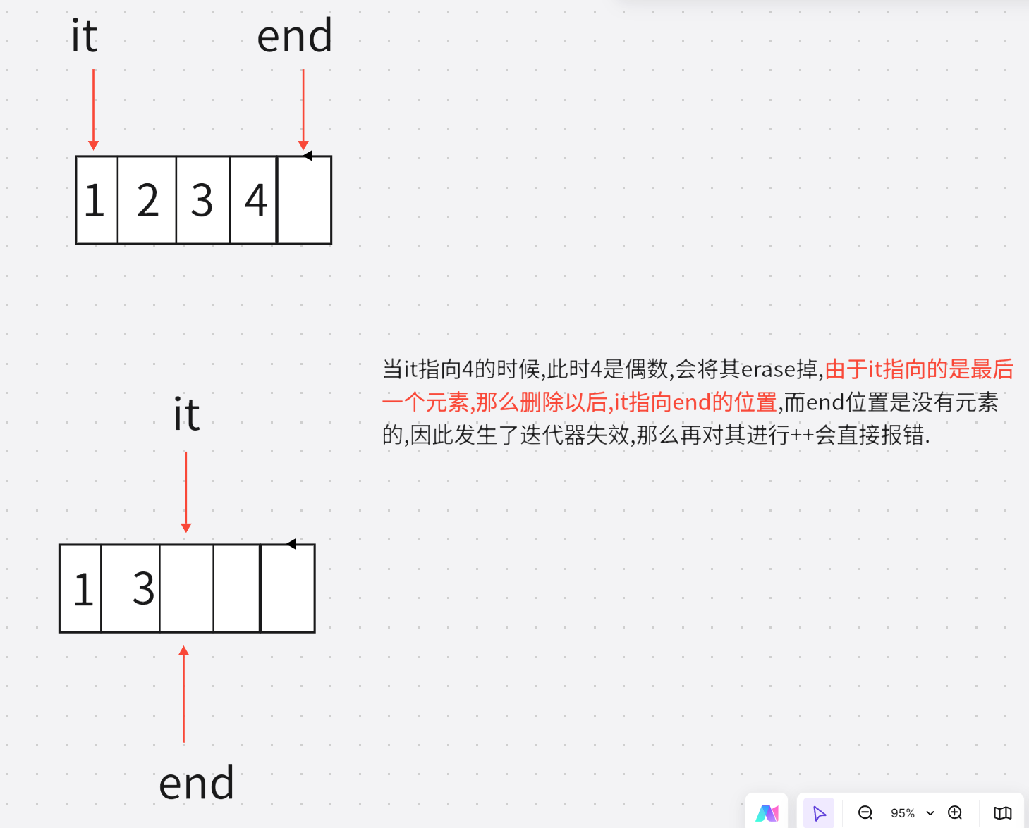 //erase也会导致迭代器失效,因此需要更新迭代器