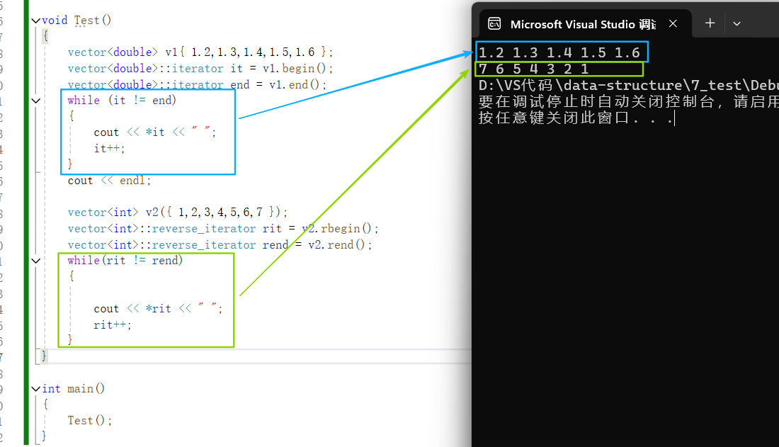 vector <int> v2({ 7,6,5,4,3,2,1 });