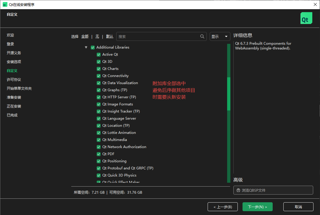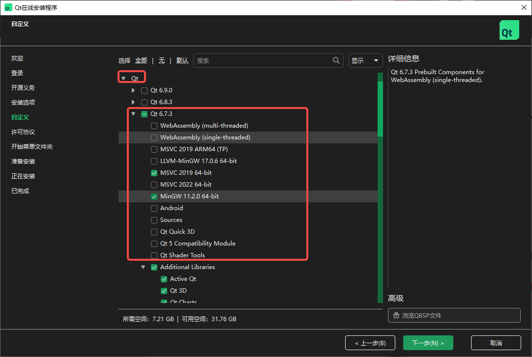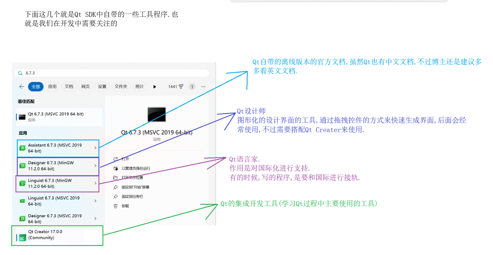 ⽬前最新的版本是 Qt 6. 但是相对来说 Qt 6 和 Qt 5 之间的核⼼功能区别不大.博主使用的是Qt6.7.3版本.