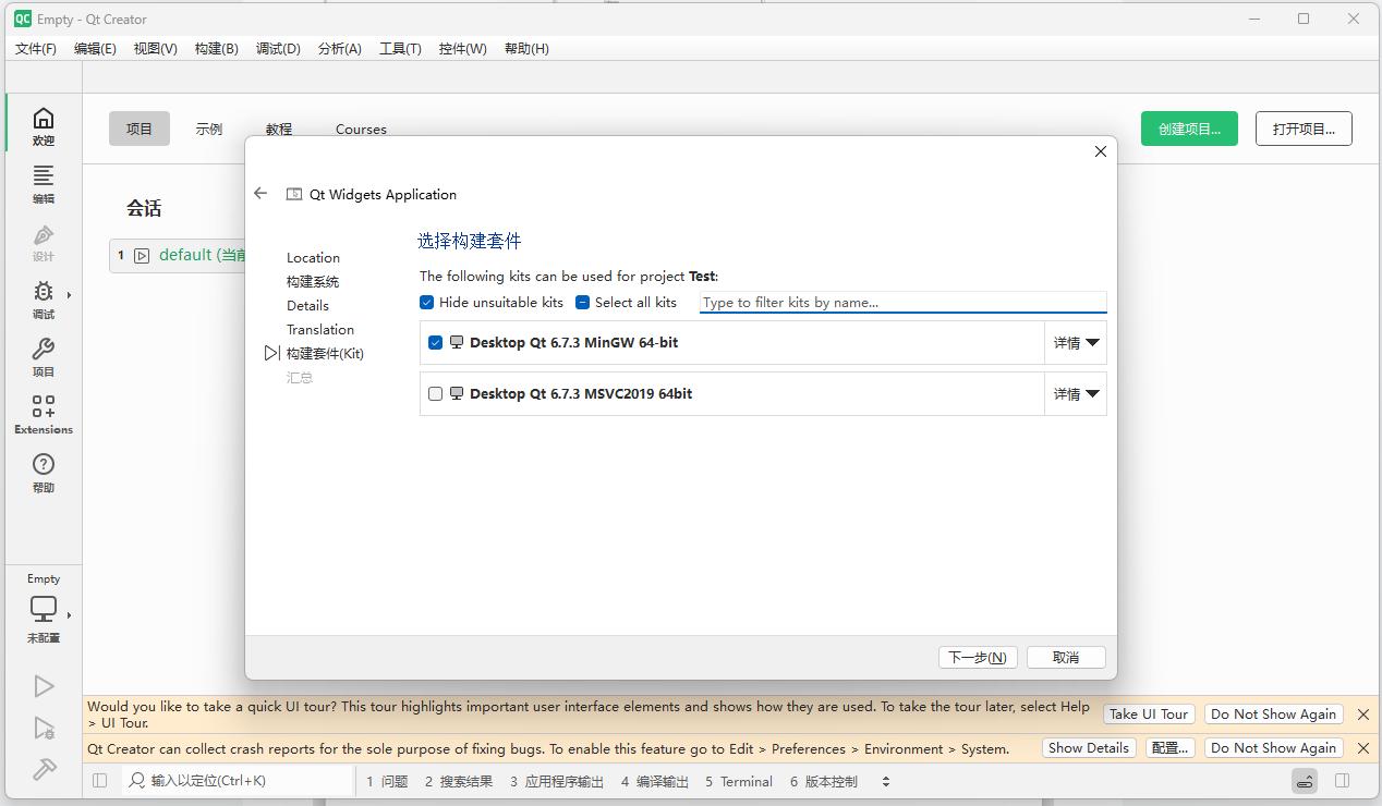 7:选择基于哪个编译器的Qt SDK来构建后续代码