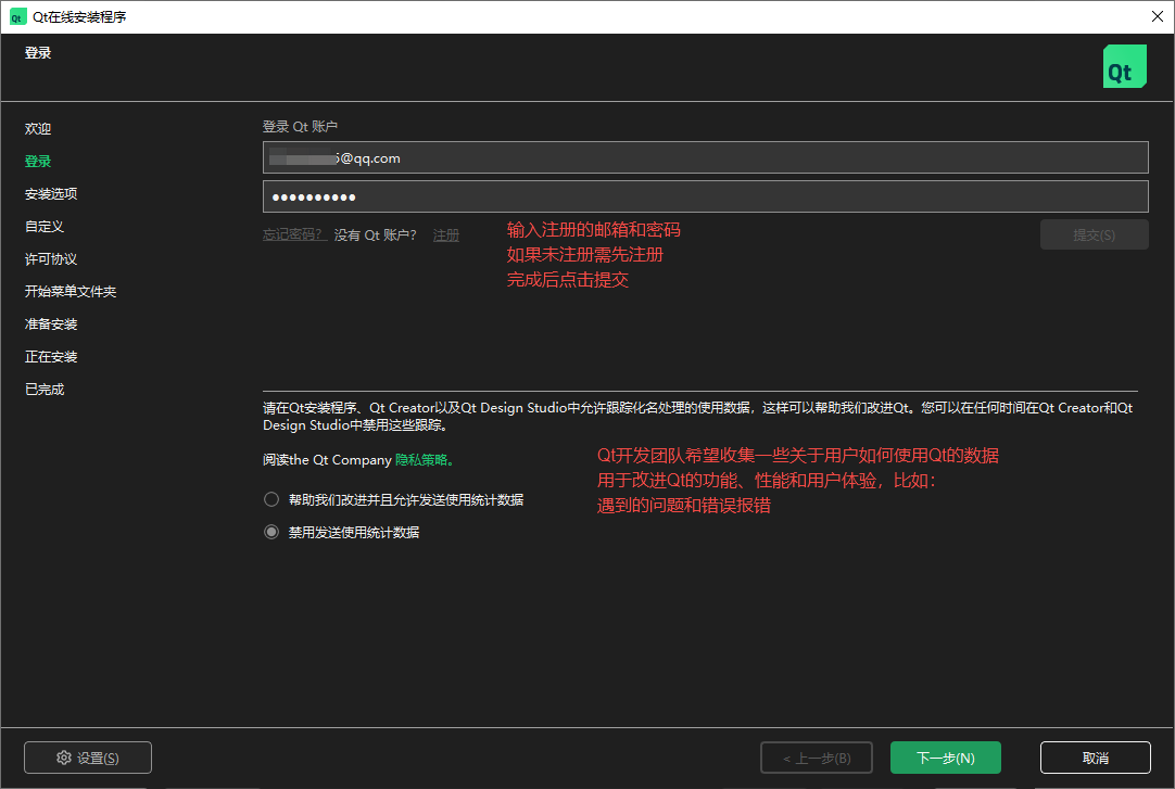Qt官⽹下载在线安装程序: https://www.qt.io/download-qt-installer-oss?