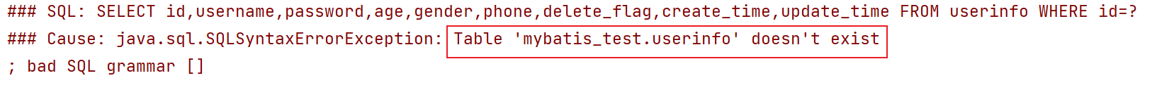 从日志可以看到,默认查找的表名为userinfo.