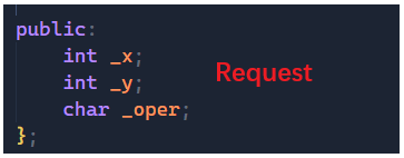 而在这里我们定义了两个类,分别是:Request和Response,这两个类分别用来处理请求和发送回复,因为我们要做的是一个计算器,所以Request类中要有要计算的两个数和运算符号。