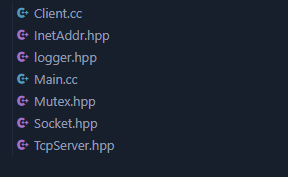 那么首先呢我们先创建出这些文件,其中Main.cc和Client.cc分别表示服务端和客户端,剩下的我们基本都认识,前面都见过,唯独这里面的InetAddr.hpp我们之前没有见过。