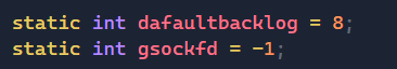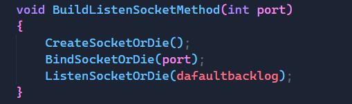 之后我们再实现这三个函数时,分别要用到sockfd,port,backlog这三种属性,这三个函数都要用到sockfd,所以这里我们直接把sockfd给当成类内成员变量来使用,而对于backlog,它是已完成连接队列(Completed Connection Queue)的最大长度,这里我们直接将其默认为一个固定值即可。