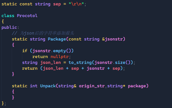 这里我们的做法是新创建一个Procotol类,在里面实现一个Package方法用来完成上面的工作,并且为了使我们最后的字符串可读性比较好,所以我们在中间添加了" \r\n "。