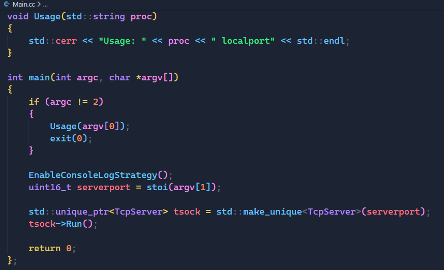 下面我们先在Main.cc,即服务端代码中将各个模块整合起来:
