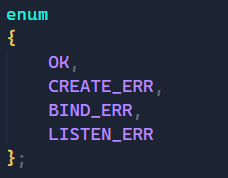 这里我们对于创建套接字过程中如果失败了我们要直接终止进程,所以我们通过枚举列举了几个变量,让代码看起来更美观,更直接。