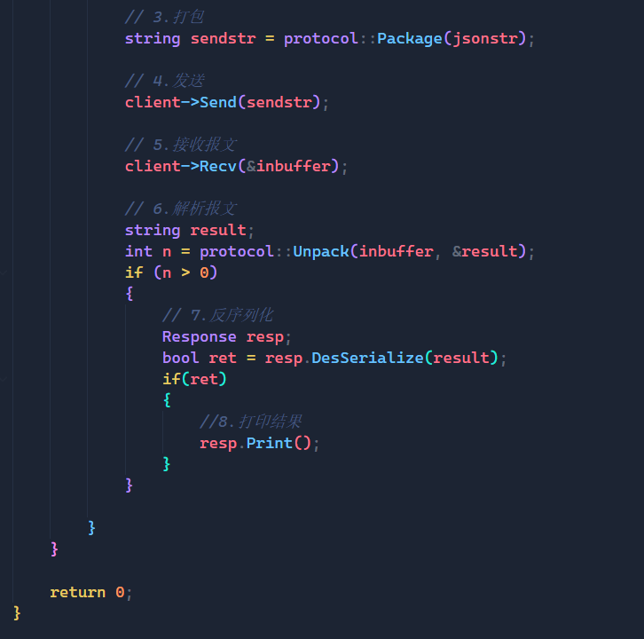 最终该函数将返回一个完全体状态的一个报文,但是我们依旧没有解决上面所说的判断完整报文的问题,所以下面我们还要接着完善。