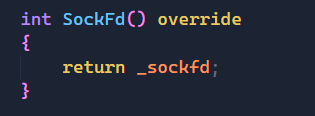 那么在上面的代码中我们想要打印出新创建的文件描述符是多少,但是这里我们还没有实现,所以我们要在Socket类中实现一下: