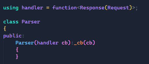 因为服务端只负责IO工作,所以对于解析客户端请求的工作肯定是不能交给服务端来完成的,所以这里我们让服务端将该工作交给其他人去完成,即通过function来完成函数的回调工作。