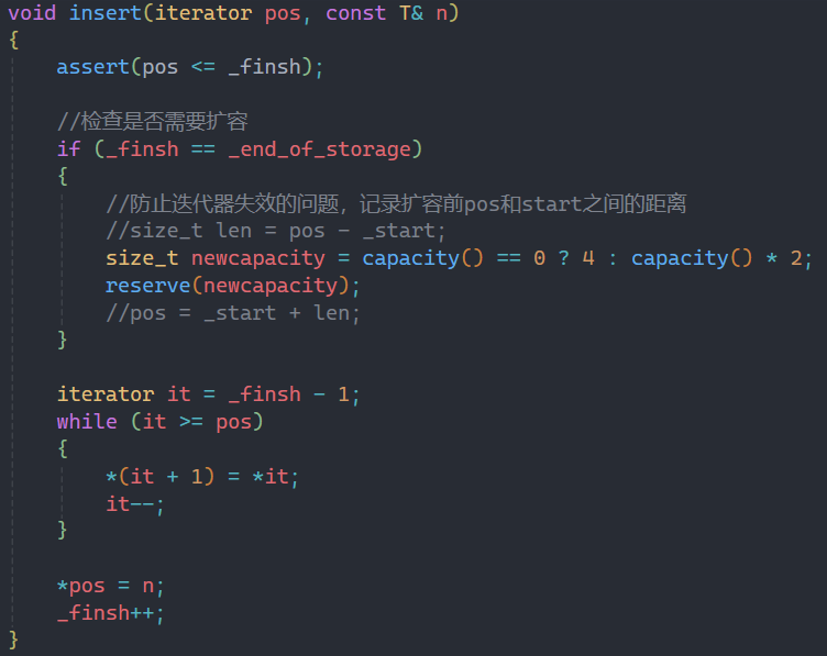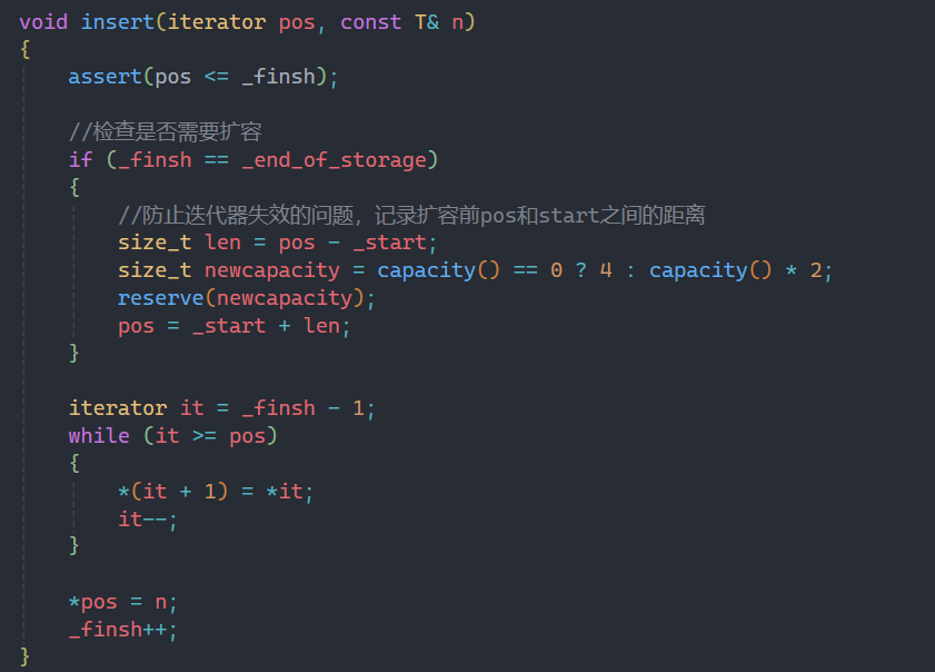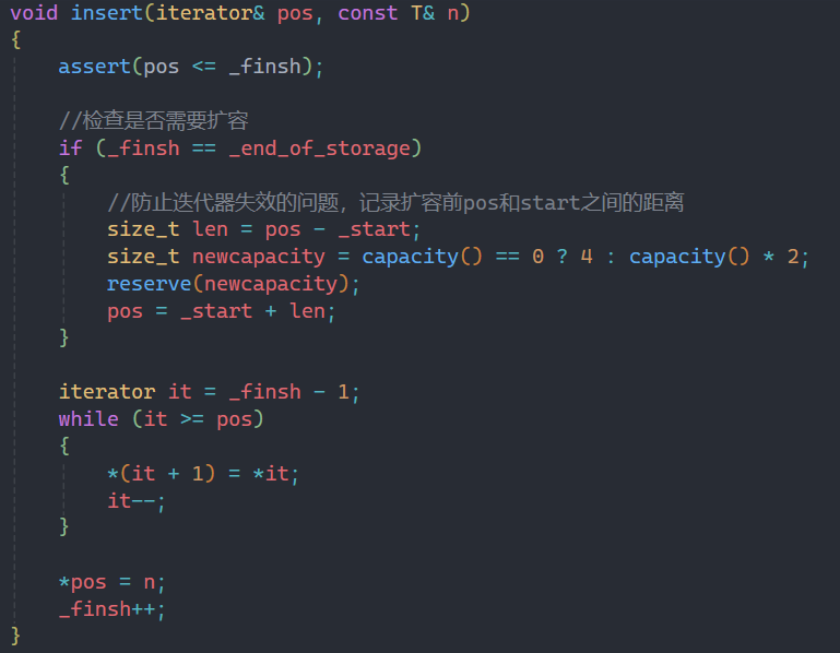 所以说呢insert之后就默认pos已经失效了,不能再使用pos了,因为并不清楚底层什么时候会扩容。