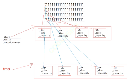 把图画出来后相信大家一眼就看出问题出在哪儿了,这就是使用memcpy的弊端,当vector中是内置类型时,这么写是没有问题的,但是对于自定义类型这么些就不行了。