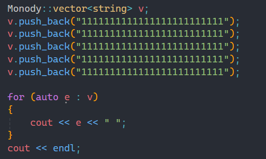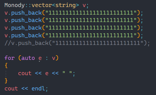 我们不再使用int类型,使用string类型,此时我们在vector插入几段字符串没有问题把,我们再看: