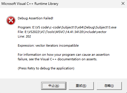 这里我们先用系统给的vector来实现这段代码,发现出现了错误,但是我们检查这段代码的逻辑是没有问题的,会出现这个错误的原因就是和上面一样,都是迭代器失效的问题。
