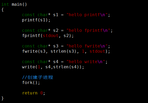 而有了语言级别的缓冲区,有了这些刷新策略,尤其是全刷新,那么就可以减少系统调用的次数,进而带来效率的提升,举个例子:
